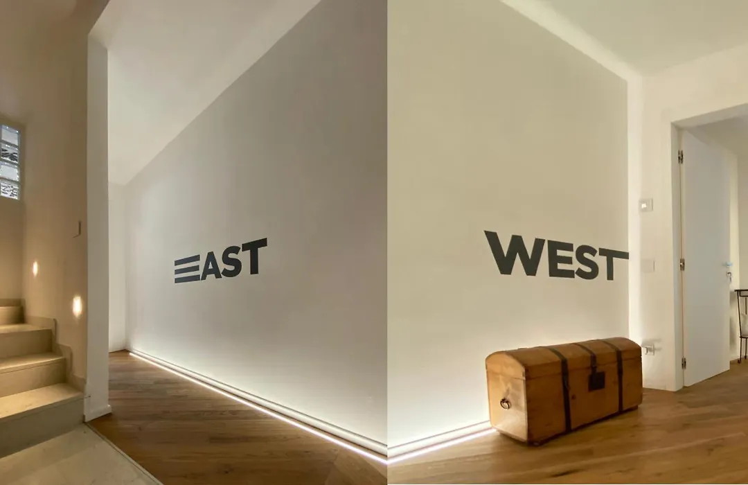 Центр Арка знаходиться приблизно за 5 хвилин ходьби від гостьового будинку. На відстані 4.6 км від готелю знаходиться кілька визначних пам'яток, наприклад Брама Сан-Мішель. Palazzo di S.Pietro o Palazzo Marchetti та Замок Арко розташовані недалеко від East West Room. На відстані 10 хвилин пішої прогулянки від цього помешкання знаходиться зупинка автобусів Foro Boario.